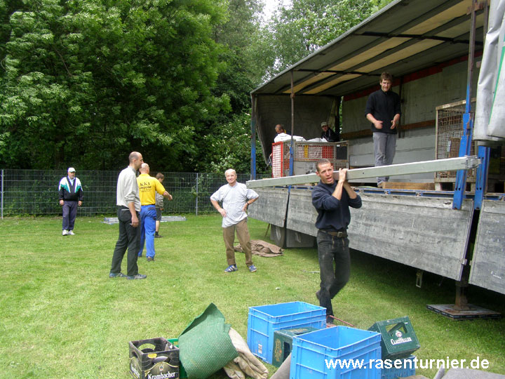 Bevor das Turnier starten kann, wird zuerst das Festzelt aufgebaut
