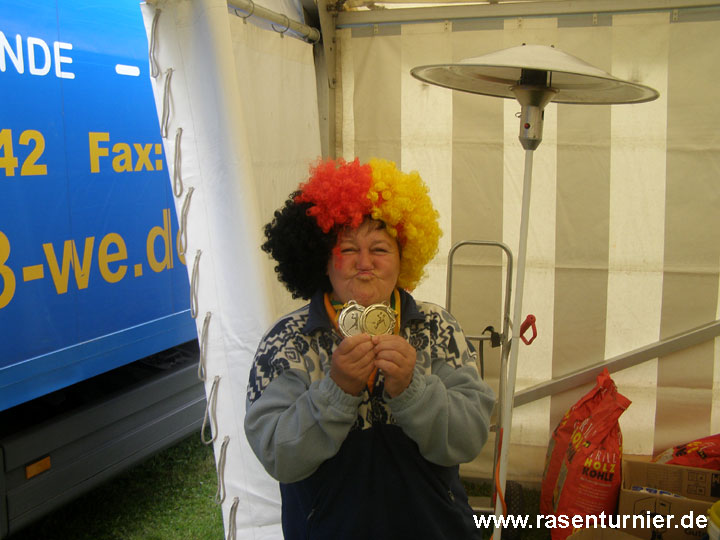 Hier sehen wir einen typischen Rasenturnier-Handballfan - aber die Medallien müssen erst erkämpft werden