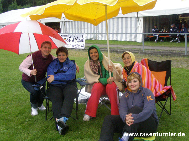 Die Frauen vom HSV Apolda wissen, wie man sich gegen den Regen schützt.
