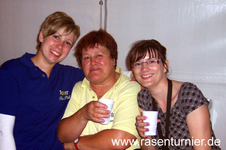 Thea (links) vom OrgTeam mit den Rasenturnier-Urgesteinen Brigitte und Sandra.