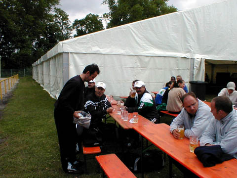 Auch vor dem Festzelt fand man immer Platz und Zeit für ein Bierchen.