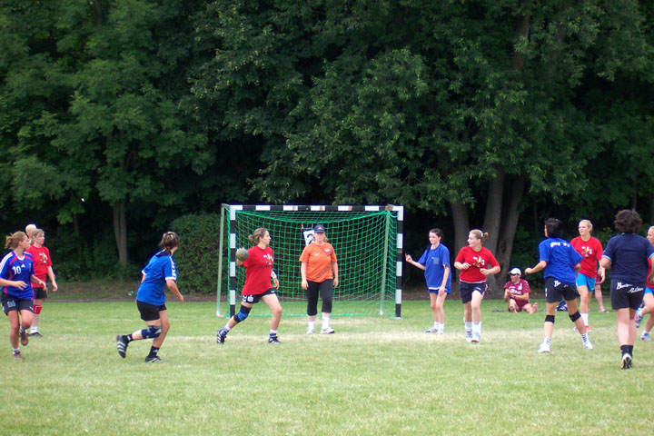 Im Frauenfinale spielten der HSV Apolda (rot) gegen Weißenfelser HV (blau)