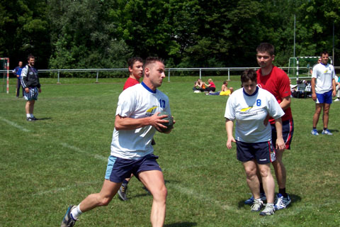 Die Fanmannschaft von TSV Blau Weiß Brehna im Angriff.